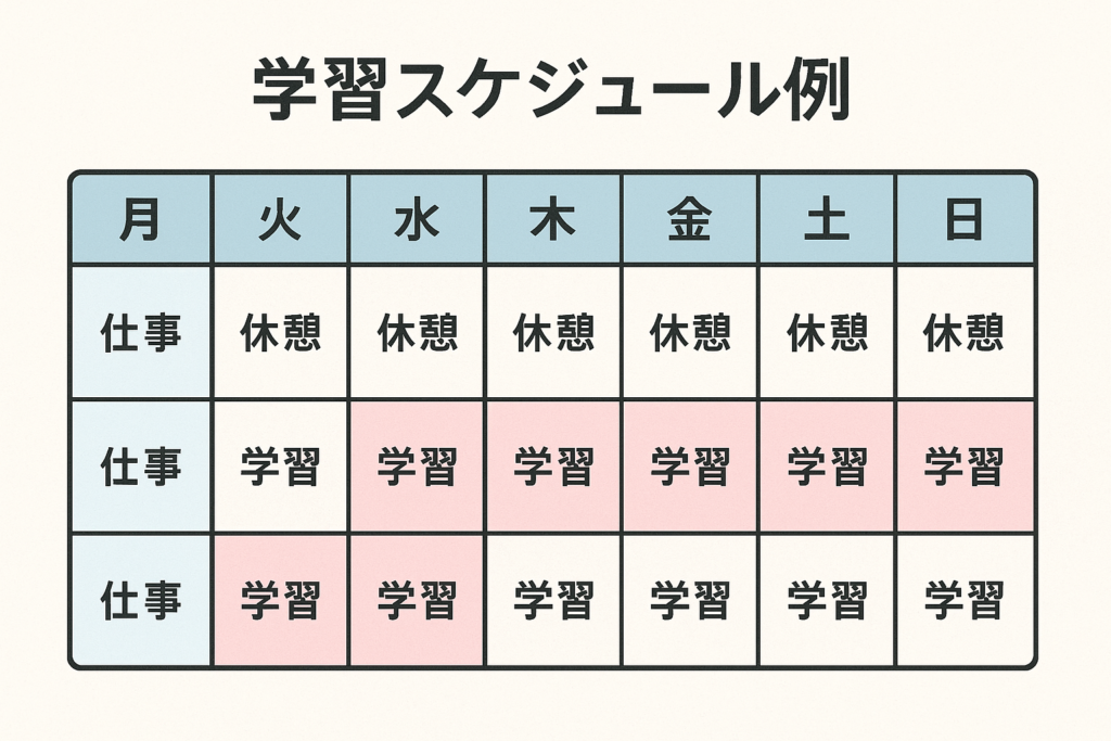 通勤時間の一部をテキスト読みや動画視聴にあてる、休日の午前中を課題にあてるなど、自分に合った「学習ルーティン」を作ることで、無理なく続けやすくなります。